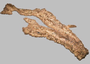 Dentro del espacio que menciono anteriormente se exhibe en bronce, un relieve de las cordilleras de los Andes colombianos con incrustaciones de muchas piedras preciosas y bañado en oro de 18 quilates (Fig. X). Esta “valiosa y preciosa” pieza es iluminada en forma tenue y sugestiva y, por lo tanto, separada del público por un vidrio. Nuevamente aquí no hay acceso, como el mapa. El texto Colombia-Columbia de María Belén Sáez de Ibarra recibe al visitante antes de ingresar a esta sala.
