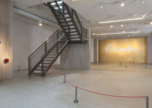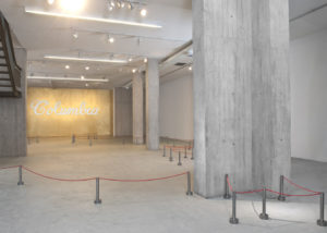 El espectador veía en el primer piso un mapa de Colombia “delineado” con un lazo rojo, que no permitía el paso de nadie —a la mejor manera de esos lazos que van guiando las filas en los bancos— y también, al fondo, en letras doradas, la palabra “Columbia”, escrito de la misma manera que hace 35 años el artista Antonio Caro concibió su famosa obra Colombia. La obra de Caro estaba escrita con el mismo estilo de la multinacional Coca-Cola, y ahora Arias escribe “Columbia”, replicando esa misma presentación.  También la palabra “Sale” se destaca dentro de la muestra, y en el segundo piso una pantalla de video bombardea al espectador con cifras y datos de la producción minera en el país. Dentro de una especie de vitrina a la que los espectadores no tienen acceso, una pequeña escultura en bronce, bañada en oro, representa las tres cordilleras de Colombia. El vidrio impide el paso al visitante. ¿Por qué no poder ver o tocar algo que nos pertenece?, surge la pregunta ante esta imposibilidad.